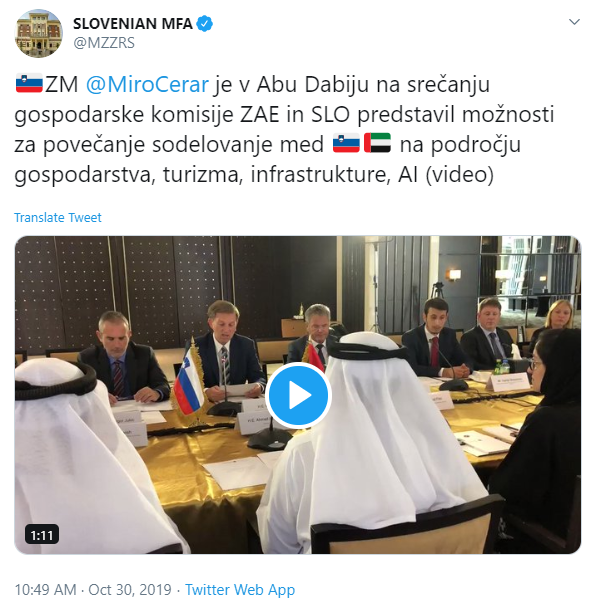 Združeni Arabski Emirati in Slovenija bosta tako po napovedi sodelovali poslovno, med drugim tudi na področju informacijske tehnologije in infrastrukture. Pri tem se očitno Slovenija ne bo ozirala na problematične prakse Združenih Arabskih Emiratov na področju človekovih pravic in drugih političnih svoboščin, temveč bo ubrala pot ekonomskega kolaboranta.
